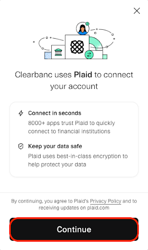 Once your institution is selected, a Plaid window will appear requesting connection: